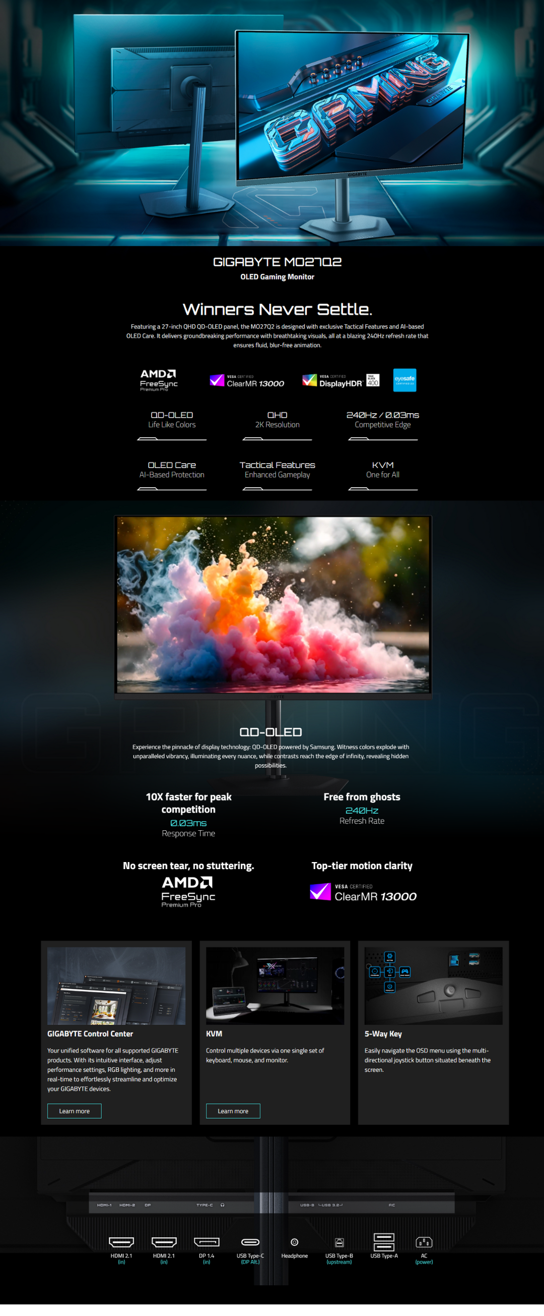 - Panel QD-OLED de 27” QHD (2560x1440): negros perfectos, colores vibrantes y precisión profesional.
