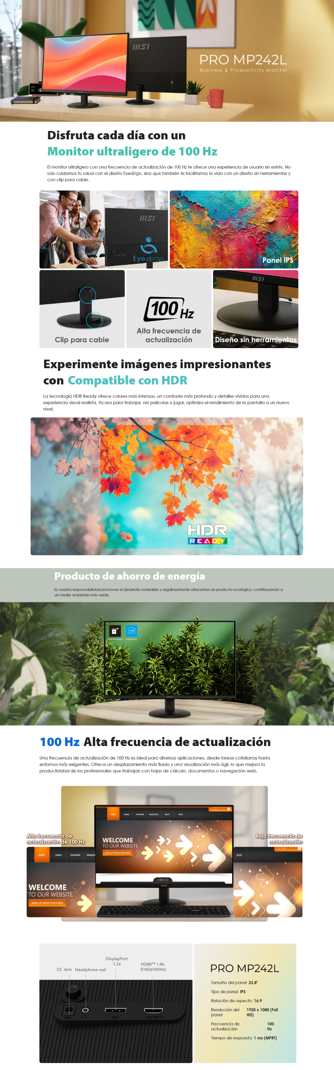Monitor MSI PRO MP242L - 24" FHD 100Hz - IPS - 1Ms