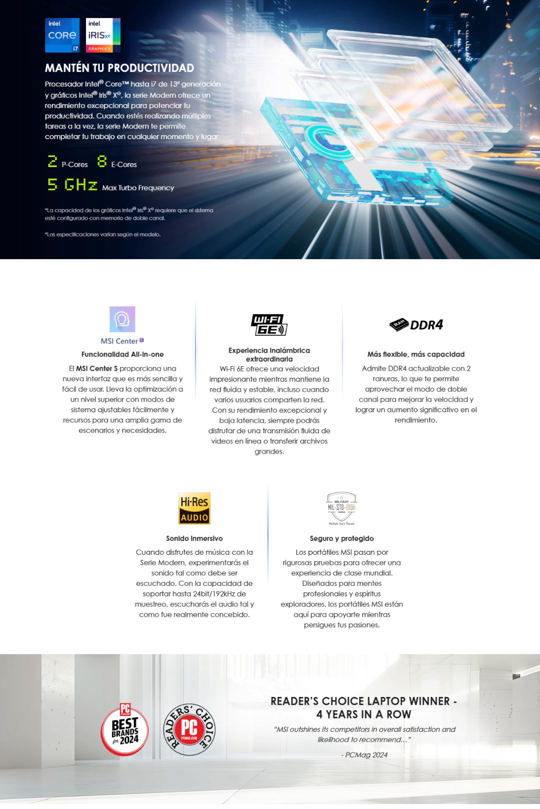 Notebook MSI Modern 14 intell i5-1334U | 16GB | 512GB NVMe | 14" IPS FHD