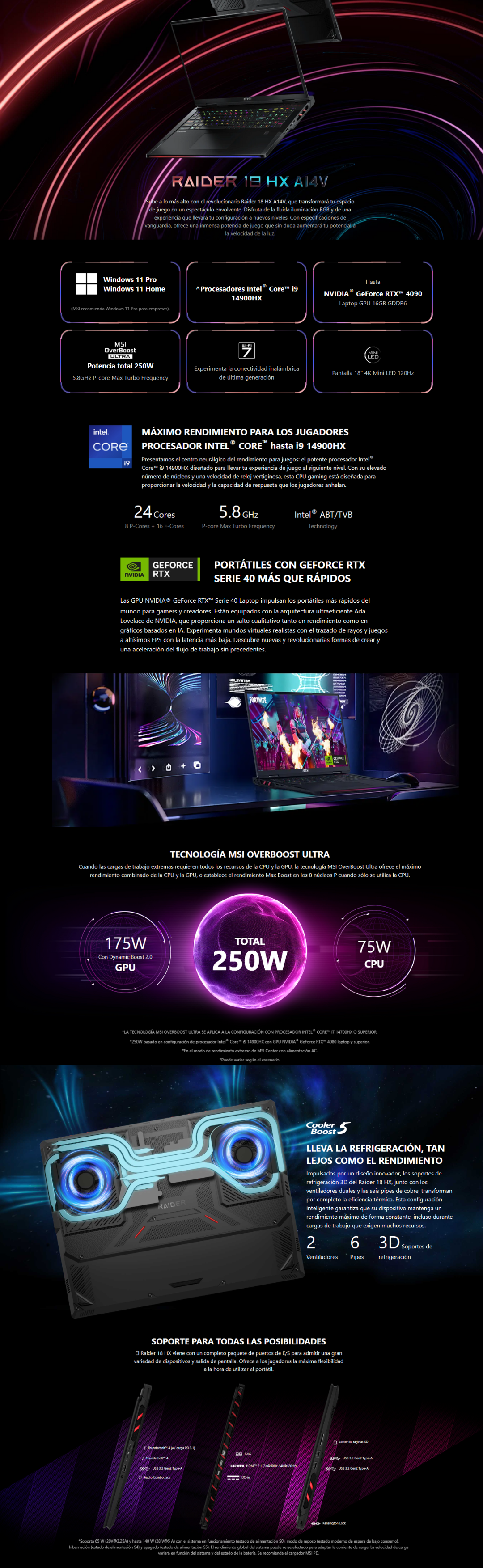 Modelo | MSI Raider 18 HX A14VGG-013US (Preventa exclusiva) |