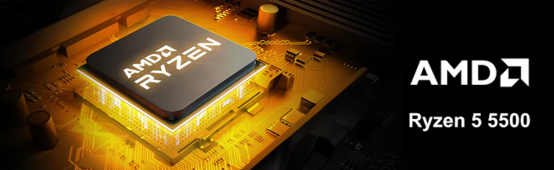 - Procesador AMD Ryzen 5 5500: 6 núcleos y 12 hilos con excelente desempeño para juegos y productividad.