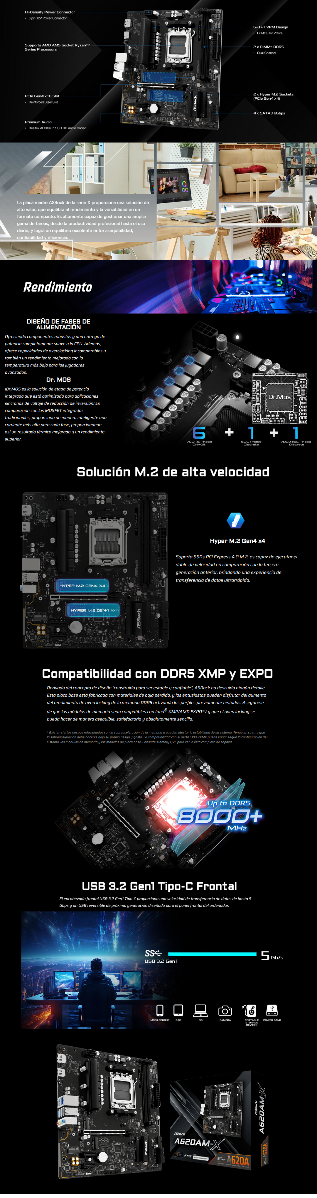 La ASRock A620AM-X es una placa madre sólida y moderna diseñada para plataformas