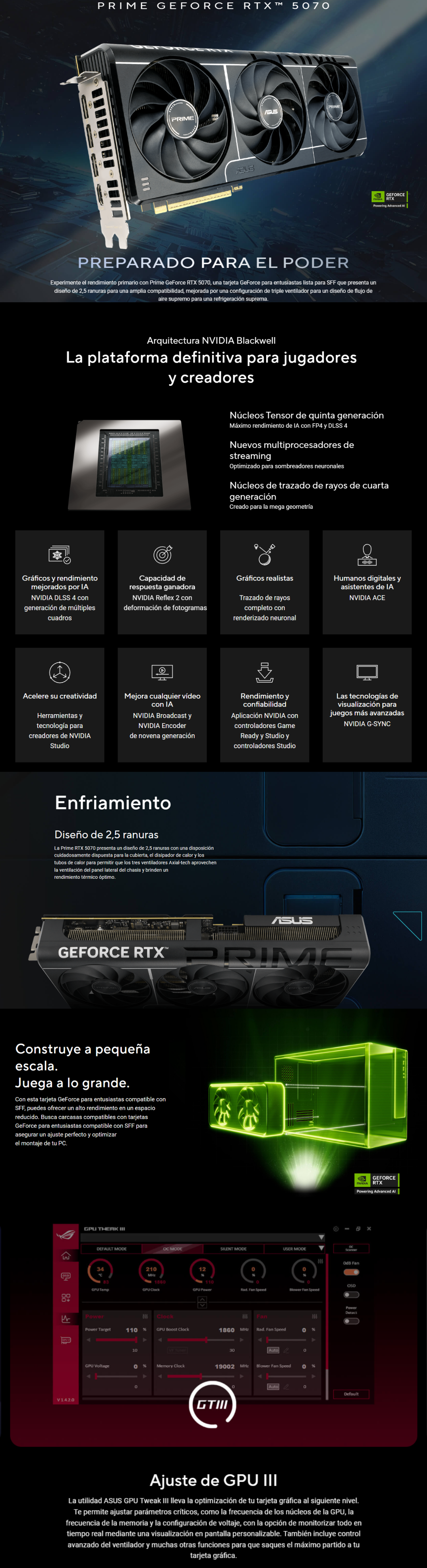 - Tarjeta Grafica ASUS PRIME Nvidia GeForce RTX™ 5070 12 GB GDDR7 Edición OC